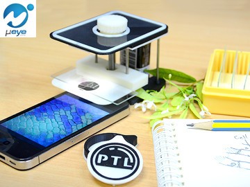 MuEye, self-attached-flexible-polymer lens which can be easily attached onto camera of smartphone of=r tablet and use as a personal microscope.